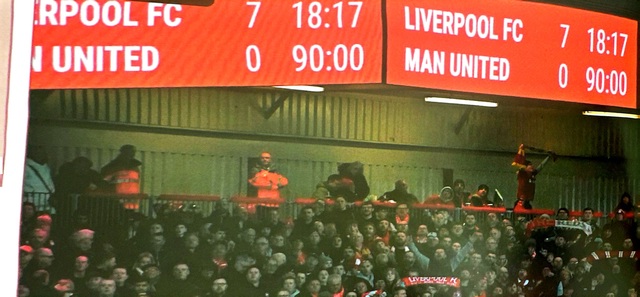2023年3月5日這一天安菲爾德球場(chǎng)分牌所記錄下的也是利物浦球迷一生中最快樂的一片。