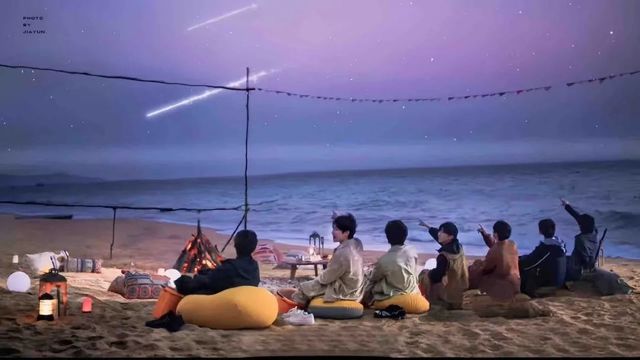 丁程鑫和劉耀文坐在兩側,嚴浩翔和賀峻霖在倒酒,張真源和宋亞軒則在地毯上擺弄什么,似乎是在展示給薇薇看的禮物。
