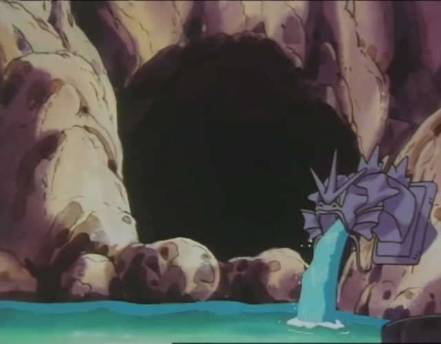 木村美雪伸手抱起杰尼龜,把牠放到暴鯉龍出水口的龍頭上,石門(mén)很快被打開(kāi)。