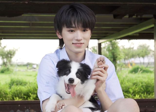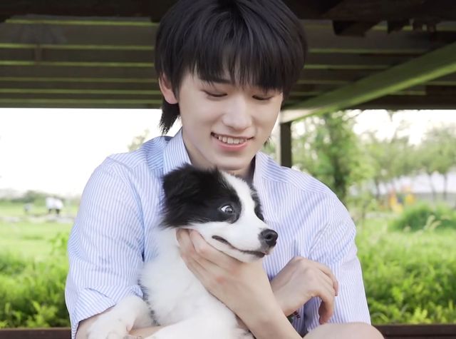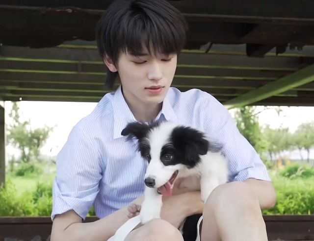 不一會兒,宋亞軒就抱著一只黑白相間的小邊牧過來了。