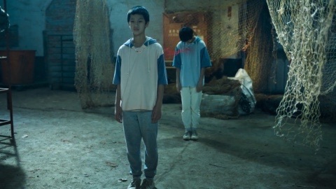廢棄的門里,跑出來紅色的線,在他身后逐漸組合成一個孩子,楊宇嚇到跌落在地上,而且背后還有一個孩子