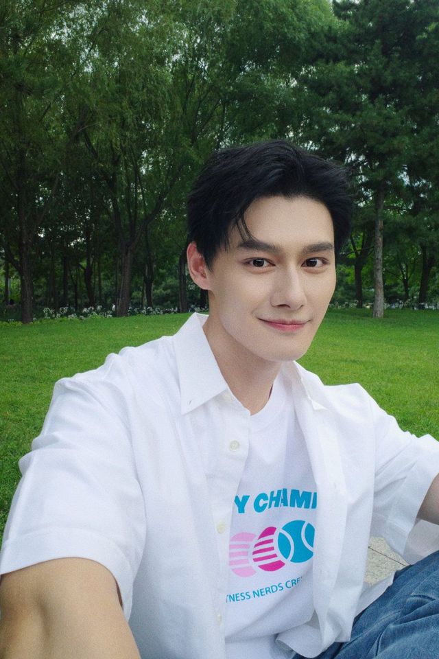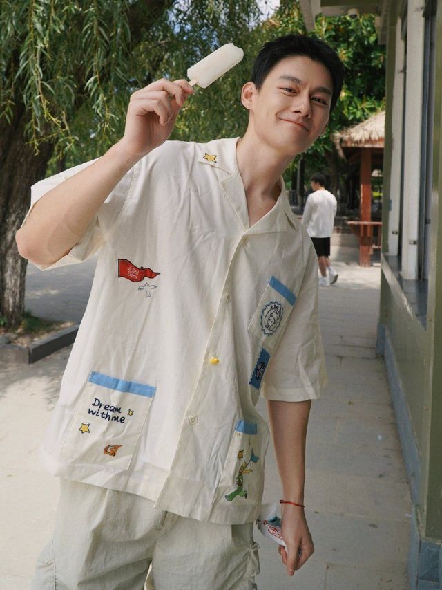 汪卓成穿著白色又可愛的短袖外套走了出來
