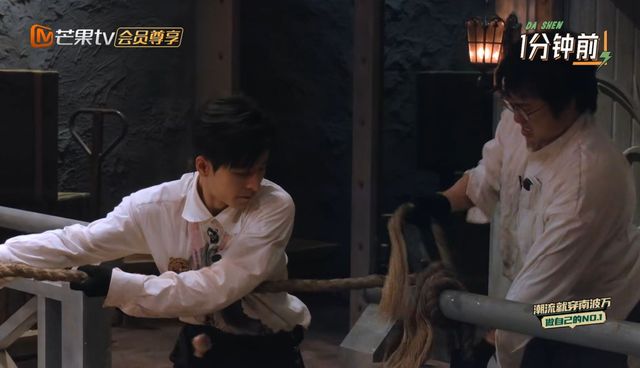陶金那邊紋絲不動(dòng),而看到密逃團(tuán)這邊火樹老師已經(jīng)將繩子牢牢得拴在后方的欄桿上。