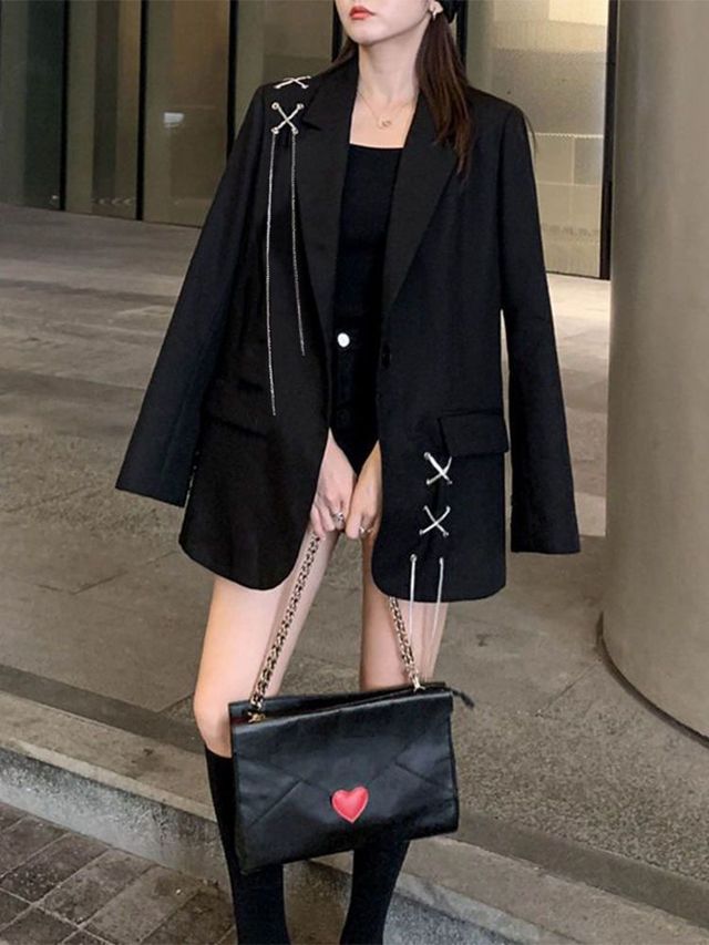 C還沒說完宴會大門被打開,眾人紛紛看去只見一位穿著黑色西裝長相很美的女生走了進來