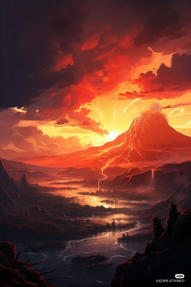 映入眼簾的周圍全是巖漿只有許多塊石頭在巖漿之上