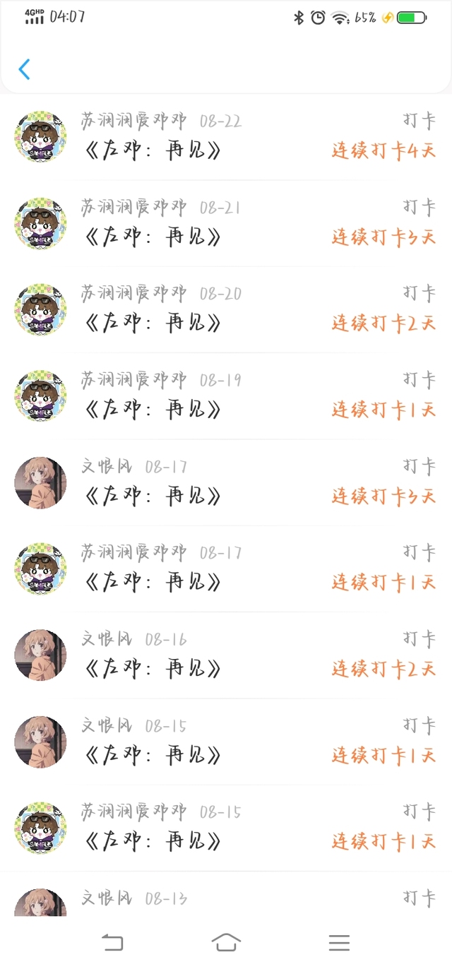 很感謝你們,一直打卡