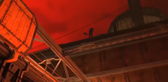 無雙走進通道后,發(fā)現(xiàn)那個喪尸馬桶窮追不舍,但好在他體型太大被卡住了