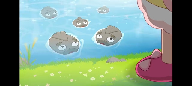 水里的石頭魚(?)聽到聲音都游過來了,露出了他們弱智(劃掉)的大眼睛。