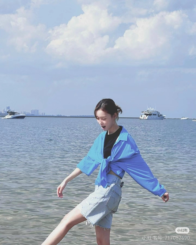 林歆琪一個(gè)人在沙灘邊玩
