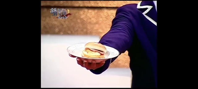 這個(gè)同學(xué)說(shuō)完,施展魔法變出了漢堡,而且漢堡還是用盤子裝起來(lái)的