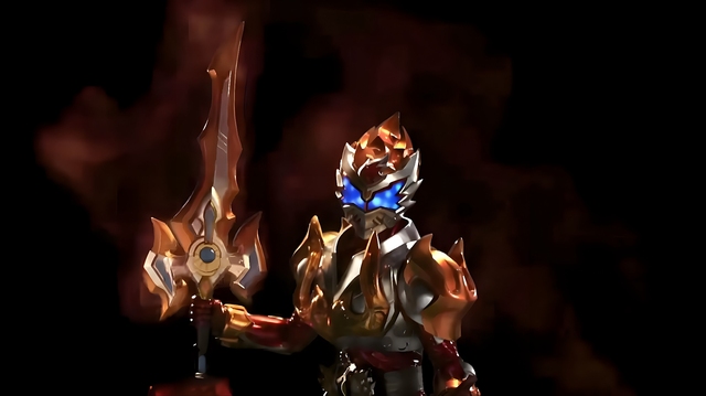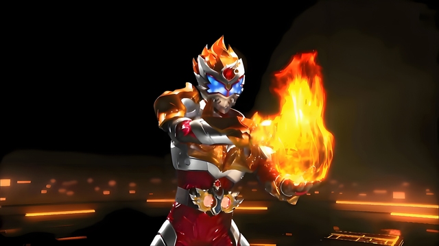 說(shuō)完,炘南迅速扭動(dòng)炎龍乾坤腰帶的右轉(zhuǎn)輪,召喚出他的主武器——烈焰刀。