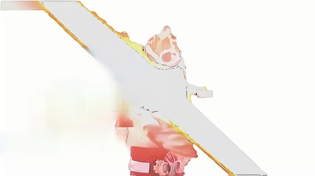 右手伸入火球,緩緩抽出一把橙白相間的刀。