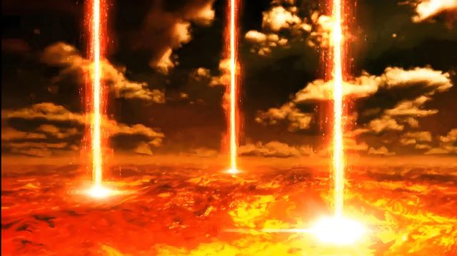 轉(zhuǎn)瞬間,周遭的空氣熾熱,四道火紅光柱從巖漿池噴出。