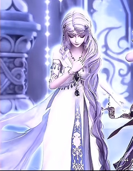 女子穿著一身藍(lán)紫色的連衣裙,瞳孔為金色,雖然不如銀塵般美艷,但也可以算是傾國傾城