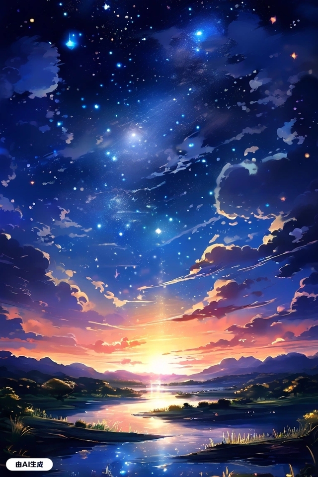 漸漸地,它們不再只是簡單地漂浮在水面,而是開始有序地排列起來。流星相互連接,最終,形成了一堵壯觀的流星星陣,宛如一條璀璨的銀河橫跨在河面上,它似乎在守護著什么珍貴的東西。