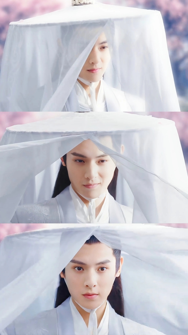 桃花紛飛,古塵操控的劍與蕭若風(fēng)手握的劍極快地相撞在一起。他的冪蘺也在此時(shí)被古塵吹起打飛。