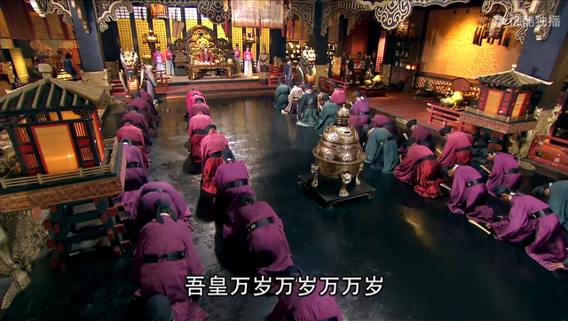 殿堂上,文武百官低頭跪拜,高宗李治端坐在殿堂的高處,盡顯高貴