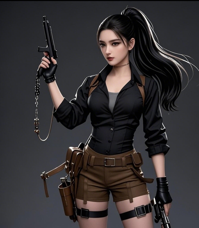 她,宛如從遠(yuǎn)古神話中走來的神秘女子。那一頭黑色長(zhǎng)發(fā)如同夜幕下流淌的墨河,柔順地垂落在她的肩頭。最引人注目的是她那雙眼睛,淺灰色的眼珠猶如冬日里覆蓋著薄雪的湖泊,在這雙眸子里仿佛藏著無數(shù)不為人知的故事,瞳孔處精致的細(xì)節(jié)像是宇宙深處的星辰軌跡,每一個(gè)細(xì)微之處都在訴說著無盡的奧秘。修長(zhǎng)而微微上揚(yáng)的眉毛像是兩道彎彎的柳葉,為她平添了幾分英氣,將她的眼神襯托得更加深邃迷人,仿佛能吸進(jìn)人的靈魂。她那微啟的嘴唇,紅潤(rùn)如三月盛開的櫻花,似乎正欲吐露某個(gè)驚天的秘密,又像在輕聲吟唱一首古老的歌謠,令人忍不住想要靠近傾聽。她整個(gè)人散發(fā)著一種神秘而又優(yōu)雅的氣息,就像一朵綻放在黑夜中的幽蘭,獨(dú)自散發(fā)著淡雅的芬芳。仿佛下一秒她就會(huì)投身于一場(chǎng)充滿未知的冒險(xiǎn)旅程之中。