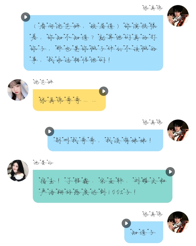 張真源這有什么的,他們啊指定過幾天就跟你一起過日子,我跟你說如果有綠茶要陷害你的話,你就裝的比她更茶更柔弱,明白嗎?