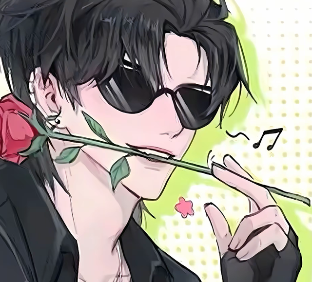 房門外,黑瞎子嘴里叼著一朵玫瑰花,昂著頭擺出最帥的45°角,凹出一個(gè)憂郁王子的造型。
