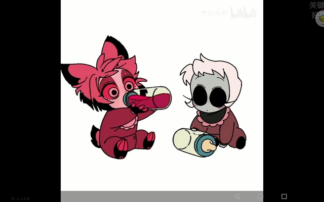 畫面是一個喝著鹿血耳朵一動一動十分可愛的阿拉斯托,和已經(jīng)喝完玩弄著奶瓶的羅茜在看著阿拉斯托手里的血,好像要喝阿拉斯托的奶瓶里的東西十分可愛