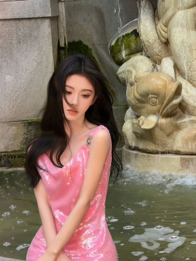她的頭發(fā)半濕,發(fā)尾貼在鎖骨,像剛被一場(chǎng)雨吻過。
