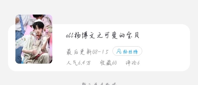 作者最最要感謝的是“喜歡襯衫哼”這位小寶。我第一次發(fā)文的時候,他就是第一個關(guān)注我、收藏我作品的人,算是我的第一個粉絲啦。其實之前我還寫過一篇奇文恒銘追求,但收藏量不高,人氣也一般,后來就刪掉了。如果有人想看或者已經(jīng)收藏了的,可以來找我要,我放在快手那邊了。唉,真的是挺感謝大家的。我發(fā)現(xiàn)好多第一次寫文的人都沒什么人氣,當時我也挺害怕的。