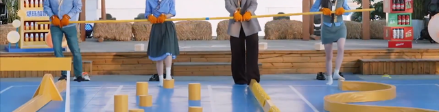 涂一站在中間,在大家剛剛踏上黃色泡沫板的時候,就開始暗暗往左發(fā)力。