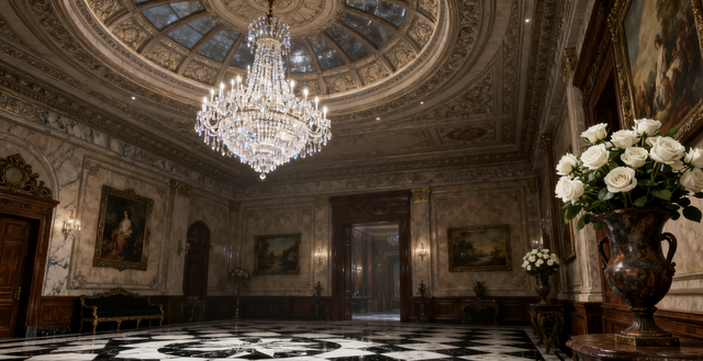 ——挑高的穹頂掛著水晶吊燈,折射出璀璨的光,地面是黑白相間的大理石拼花,墻壁上掛著不知名的油畫,角落里的古董花瓶插著新鮮的白玫瑰,空氣中彌漫著淡淡的木質(zhì)香,處處透露著紙醉金迷的精致,和之前略顯擁擠的月租房簡直是天壤之別。