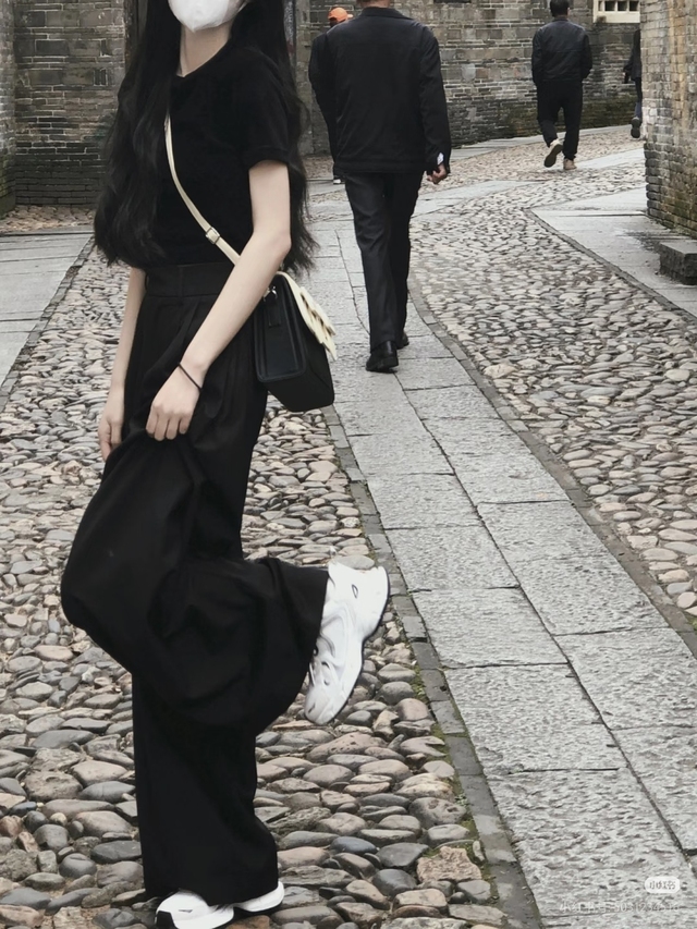 趙蕓一一身黑色短袖黑色長(zhǎng)褲白色運(yùn)動(dòng)鞋扎了高馬尾上剛剛想開(kāi)后坐車(chē)門(mén)