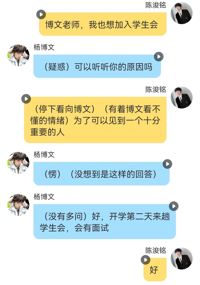 楊博文(想起左奇函昨天和他說的要開幕式主持人致辭)好,馬上來