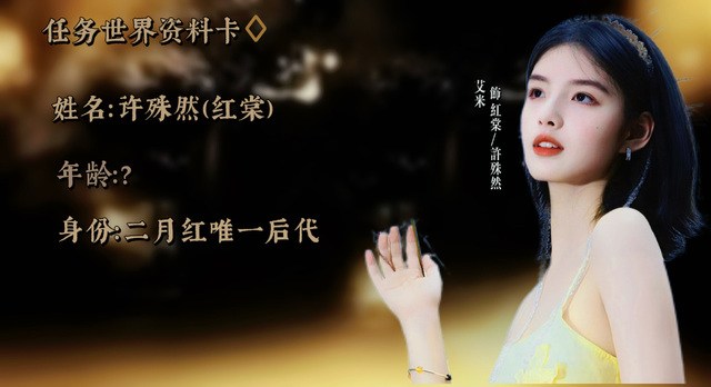 許殊然,原名紅棠,是九門里二月紅和丫頭的唯一后代,小時(shí)在丫頭因病去世后,二月紅就送她去了張家古樓尋求庇護(hù),隨后跟隨妻子而去,年紀(jì)小小的紅棠被迫進(jìn)入古樓里守墓,因?yàn)檎`食一種形狀奇怪的草藥患了一種叫“月蝕噬心癥”的怪病,因此長生不老,但是代價(jià)是每月都會(huì)承受噬心痛。