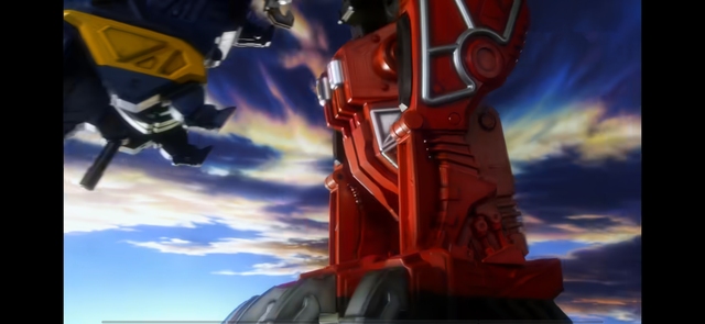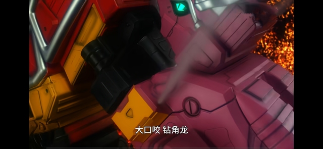 然后強(qiáng)龍神全力沖向拍碎,先用鉆頭重?fù)簦缓笤儆么潭苤負(fù)襞乃?,拍碎朝著?qiáng)龍神釋放光束,駕駛艙內(nèi)三人做出跳的動(dòng)作,強(qiáng)龍神跳躍躲開光束