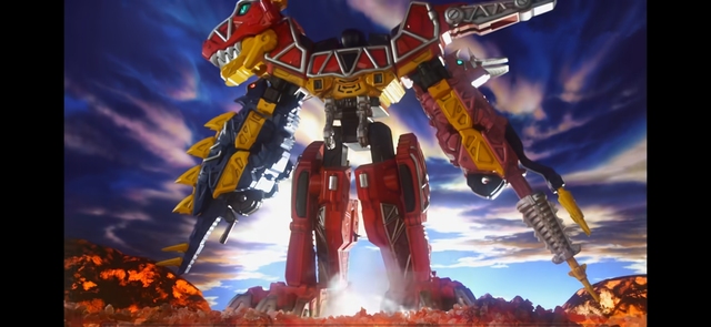 然后三頭獸電龍組合成了人形機(jī)器人