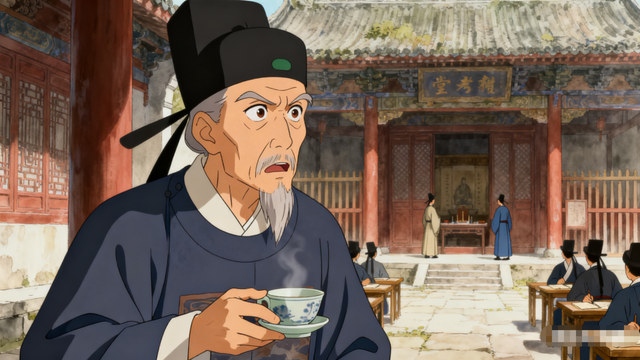 高坐明倫堂上主持縣試的學(xué)政大人,是一位面容清癯、目光深邃的中年官員。他正端茶欲飲,動作卻猛地一頓,犀利的目光瞬間投向考棚方向,眼中閃過一絲難以置信的驚異。