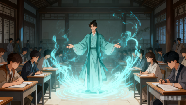 一聲極其輕微的震鳴,仿佛源自虛空。以劉宇的號舍為中心,一股清靈之氣悄然蕩開,如春風(fēng)拂過冰面。鄰近幾個正因文思枯竭而焦躁抓撓、氣息紊亂的考生,被這股清氣一掃,竟莫名的心頭一靜,那股無名的燥火被悄然撫平,紛亂的思緒似乎也清晰了幾分。他們訝異地抬頭四顧,卻不知變化從何而來。