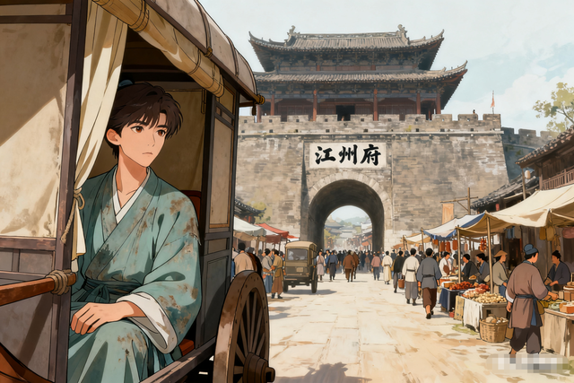 江州府城的晨光剛漫過護(hù)城河,便被碼頭的喧囂撞得粉碎。貨船首尾相接,搬運(yùn)工的號(hào)子混著商販的吆喝,裹著水汽撲面而來——這股鮮活又厚重的煙火氣,與臨川縣的竹影清寂,判若兩個(gè)天地。劉宇扶著馬車車窗,望著城頭“江州府”三字鎏金匾額,指尖無意識(shí)地摩挲著袖口磨舊的青衿邊角。