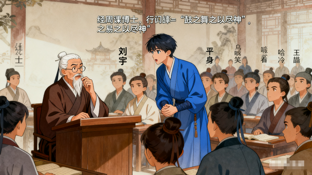三日后的經(jīng)義課上,周博士捻著胡須,翻到《周易·系辭》“鼓之舞之以盡神”一句,目光掃過眾學(xué)子: