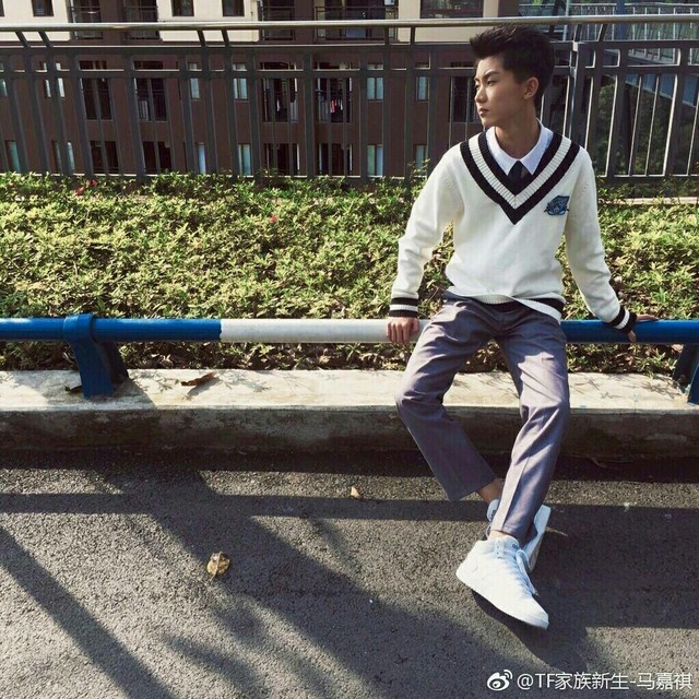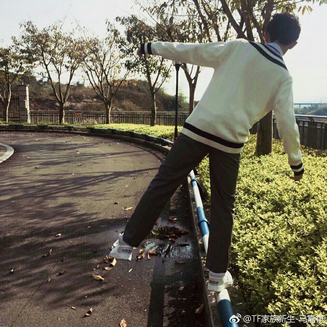 今天,馬嘉祺站在樓下,拿著喇叭