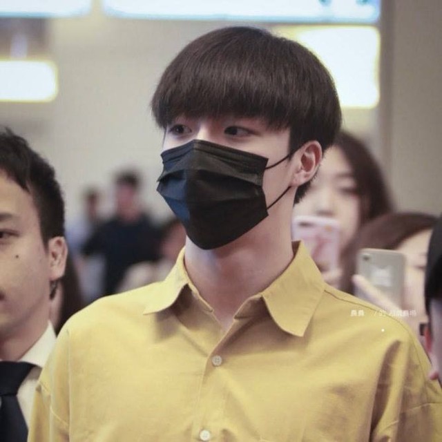 陳立農(nóng)身穿衣件黃色襯衫,帶黑色口罩。