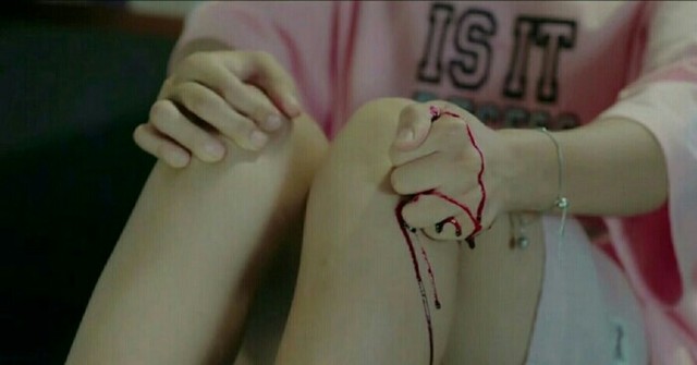 剛剛太過于著急,導(dǎo)致樸燦烈拽宋行嘉倒下的時候,她的腿擦到了路面上的石子。