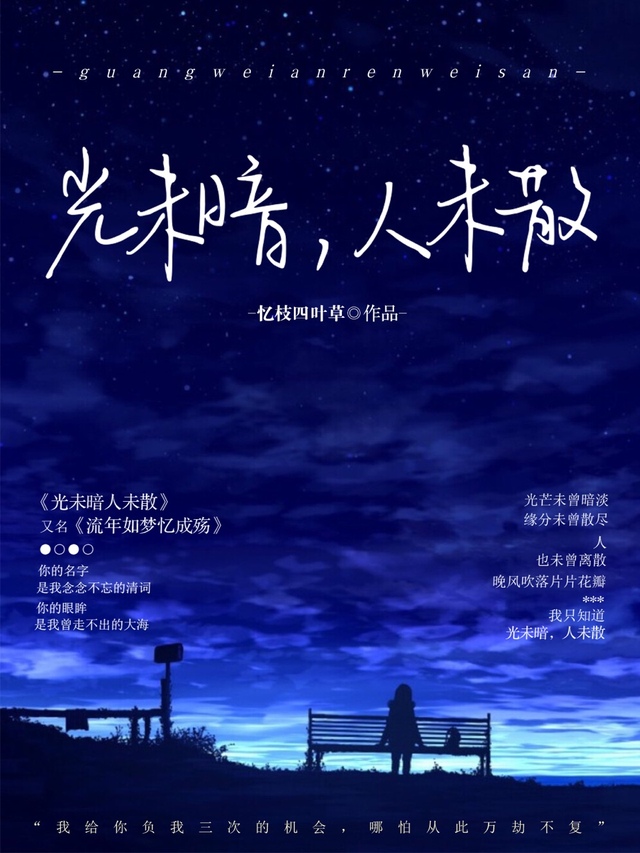 路邊的燈光昏暗,照的景物朦朧,燈光暈染了少女單薄的身影,讓人感到無邊的脆弱感,好像下一秒那人會變成天邊的飄雪融入地面,一身雪白皆被暈染。