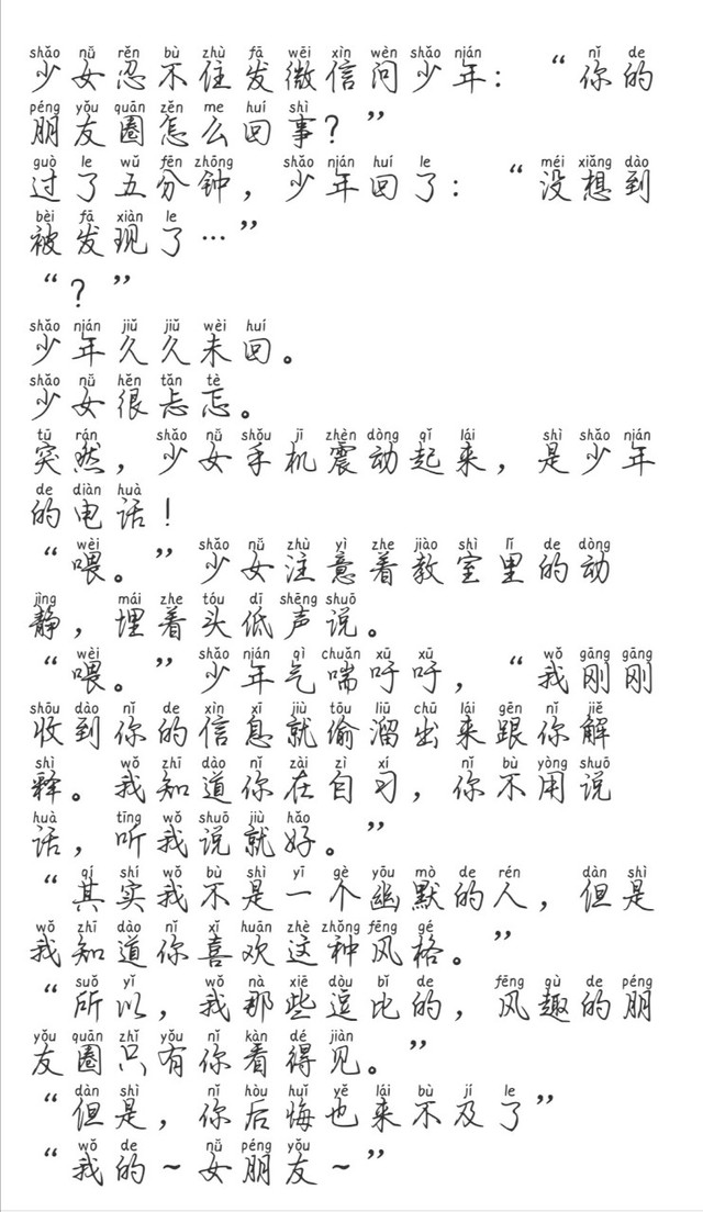 好在最后少女以以后請(qǐng)他喝奶茶的借口成功要到了少年的微信。