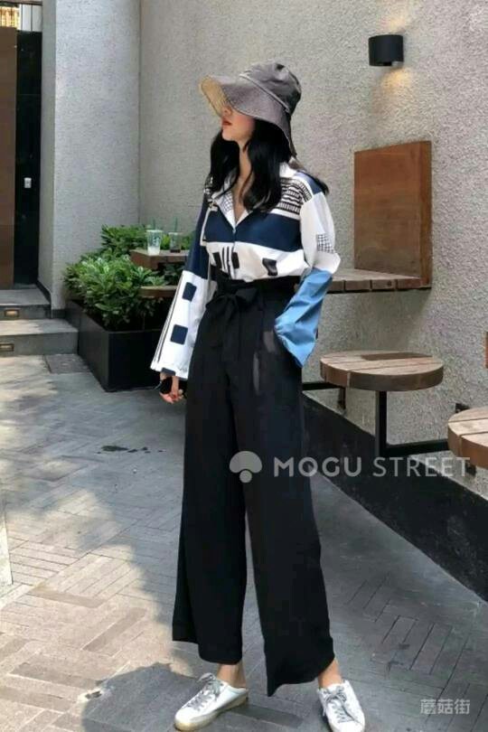 今天是沒(méi)有統(tǒng)一的服裝,上身花色襯衫,下身黑色闊腿褲,腳上踩著小臟鞋