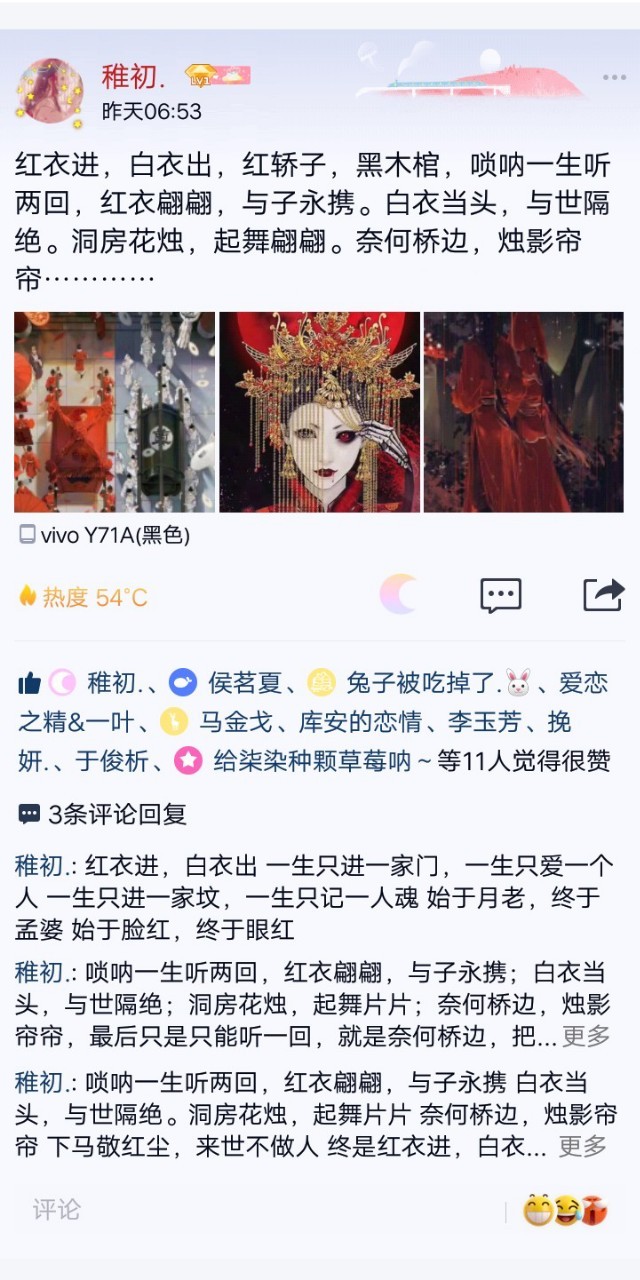紅衣進,白衣出一生只進一家門,一生只愛一個人一生只進一家墳,一生只記一人魂始于月老,終于孟婆始于臉紅,終于眼紅