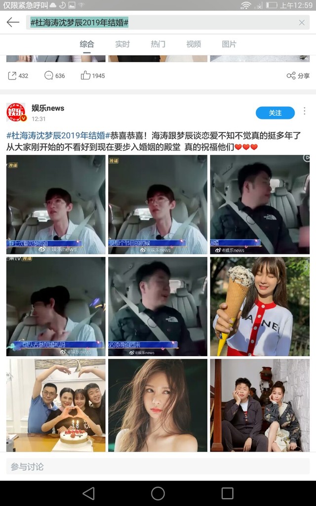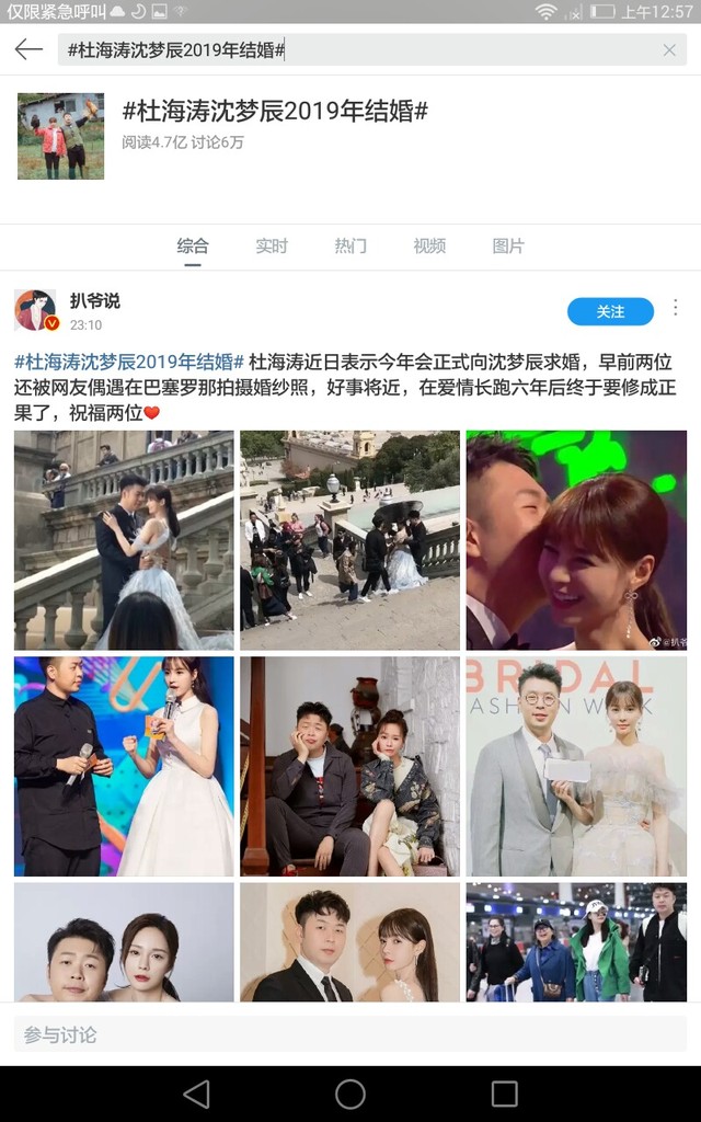 廣播今日話題:#杜海濤沈夢辰2019年結婚#