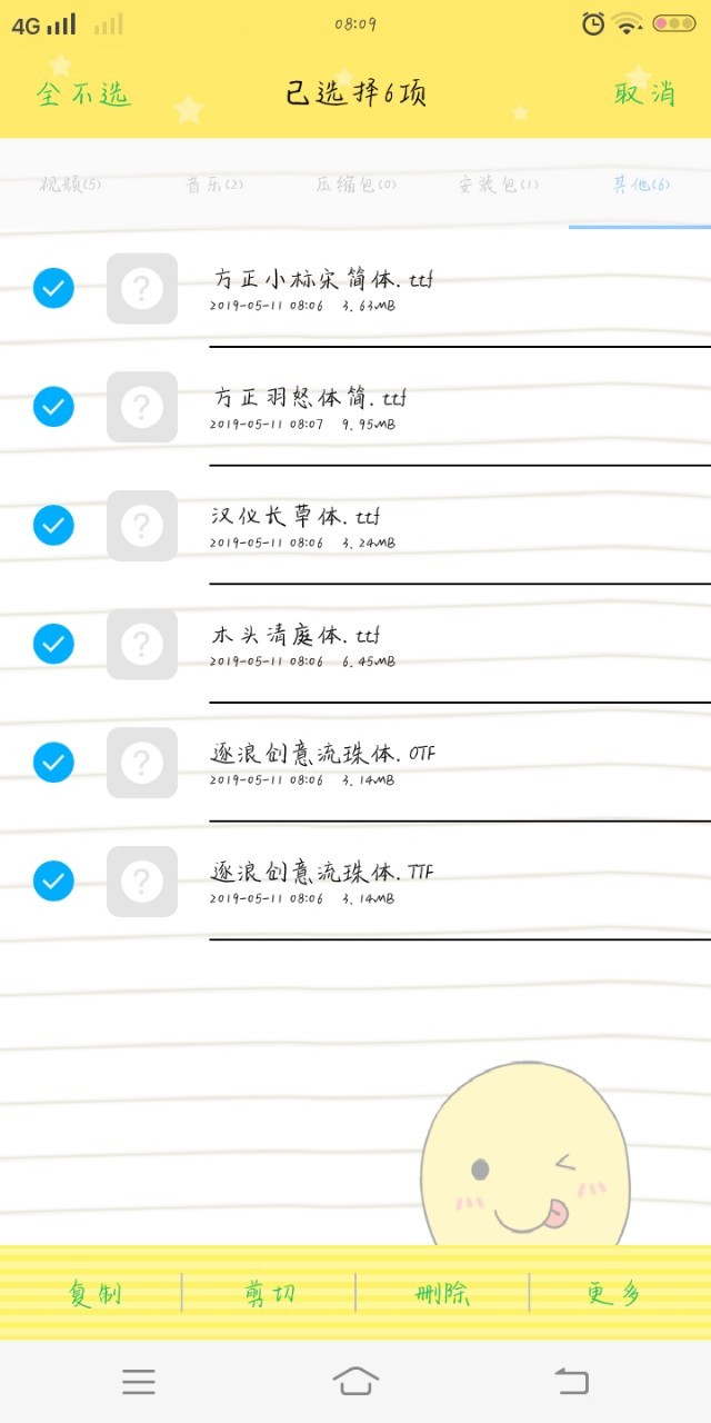 森鹿但是后來使用字體的時候。不管你家網(wǎng)快不快,你手機內(nèi)存夠不夠。你點開我的字體的時候很慢很慢很慢才會出來。