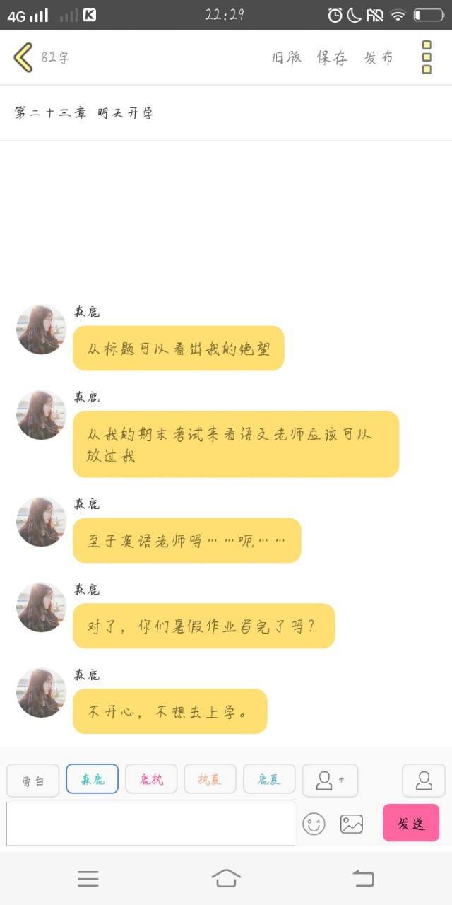 森鹿這個(gè)是我開(kāi)學(xué)的前一天碼的,然后我媽說(shuō)開(kāi)學(xué)了讓我交手機(jī),然后……