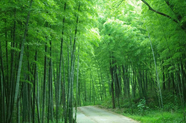 走到一片竹林邊