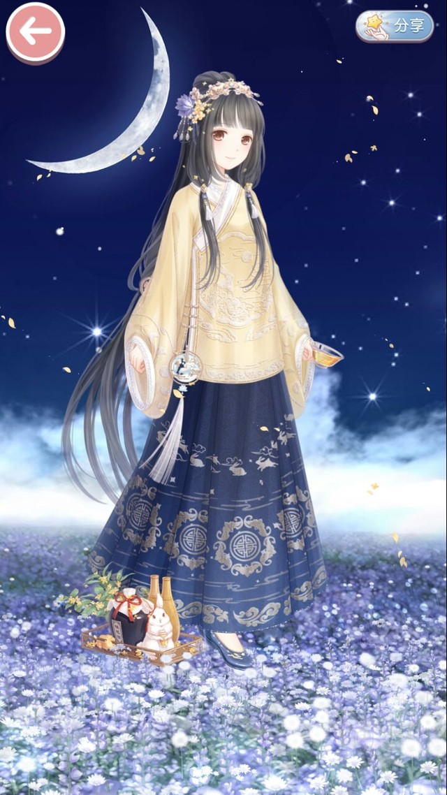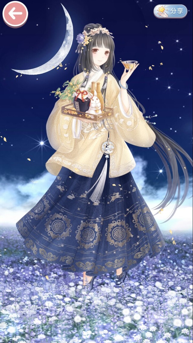 街頭巷尾歡聲笑語,九重天上寂寞廣寒,她自斟一杯緩緩下拜,敬明月千里,年年如有今朝。